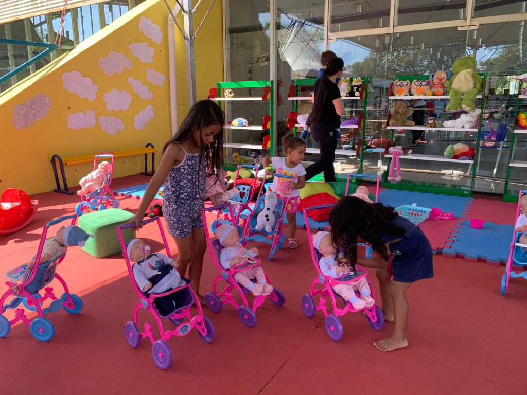 Isabela Lima Maciel tem 6 anos de idade e aproveitou o domingo com sua mãe e tia. “Minha mãe viu um vídeo no Instagram e me trouxe aqui. Estou gostando muito de brincar com as bonecas e também já pintei alguns desenhos”, diz com um sorriso.