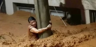 Mulher sobrevive após 3h agarrada a um poste durante enchentes em...