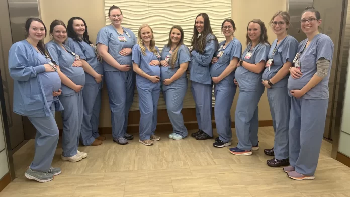O Hospital St. Vincent, localizado em Green Bay, no estado de Wisconsin, está vivenciando uma coincidência rara e curiosa: 14 enfermeiras obstetras da instituição estão grávidas ao mesmo tempo. A informação foi confirmada pelo próprio hospital, que brinca com a situação, chamando-a de um verdadeiro “baby boom”.