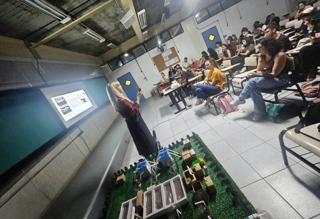 Na noite da terça-feira (2), a palestra foi ministrada biólogas Aline Ricioli Machado e Clélia de Barros. Aline explanou sobre sua atuação na autarquia, como coordenadora do licenciamento ambiental e educação ambiental, bem como detalhou aos alunos como é realizada a solicitação da autorização ambiental para intervenções necessárias pelo Saae/Sorocaba, a geração dos Termos de Compromisso de Recuperação Ambiental junto aos órgãos ambientais responsáveis, os trâmites para idealizar os plantios para atender o reflorestamento de áreas degradadas e as atividades que exerce relacionadas a Educação Ambiental e Implantação do Viveiro de produção de mudas nativas do Saae/Sorocaba.