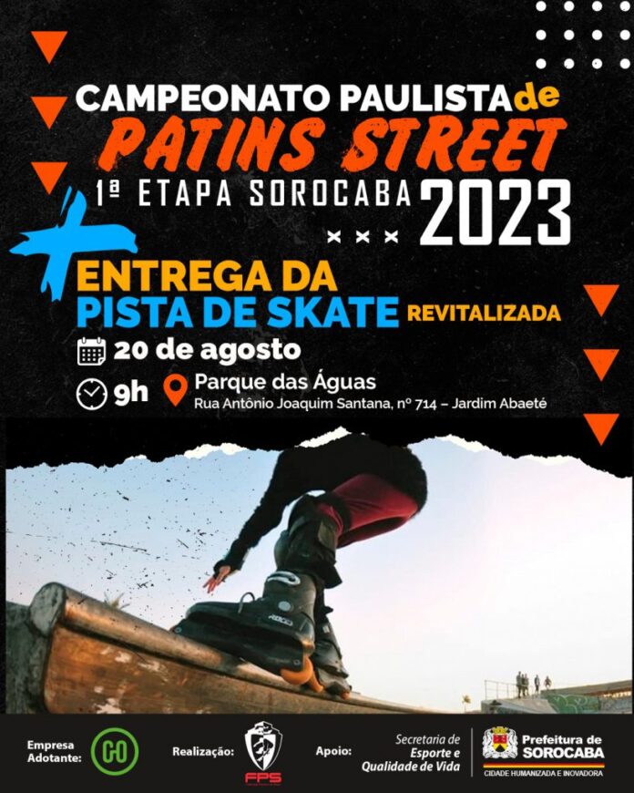 No próximo domingo (20), acontece a 1ª etapa do Campeonato Paulista de Patins Street 2003, no Parque das Águas, no Jardim Abaeté. A competição, que acontece a partir das 9h, marca a entrega da revitalização da pista de skate do parque, viabilizada pelo “Adote Sorocaba”, programa promovido pela Prefeitura de Sorocaba, por meio da Secretaria de Gabinete Central (SGC). As melhorias foram realizadas em parceria com a empresa adotante Go Cities Sponsor Restoration.