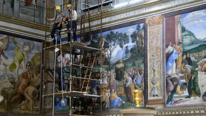A chaminé que indicará ao mundo, por meio da tradicional fumaça branca ou preta, se o novo Sumo Pontífice foi escolhido já está instalada desde a última sexta-feira. No entanto, outros preparativos ainda seguem em andamento no interior da capela.