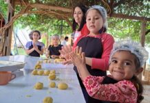 Crianças aprendem a fazer broinha de fubá em oficina de culinária gratuita na Biblioteca...