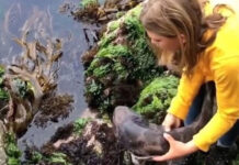 Menina de 11 anos resgata tubarão encalhado em pedras na Austrália