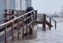Homem enfrenta água congelante para salvar cadela e seus filhotes abandonados durante inundação no...