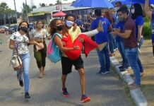 Professor carrega estudante com perna enfaixada para ela não perder o vestibular no Ceará
