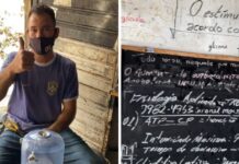 Borracheiro estuda educação física nas horas vagas fazendo anotações nas paredes: ‘Ama aprender’