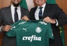 Bolsonaro fala com Felipe Melo e Breno Lopes antes de jogo do Palmeiras
