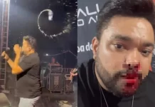 Cantor é atingido por lata no rosto e sai do show sangrando em MT