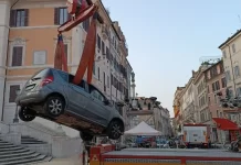 Idoso é resgatado após tentar descer famosa escadaria de Roma de carro