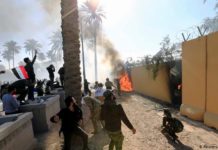 A Embaixada dos Estados Unidos em Bagdá está ocupada por milhares de...
