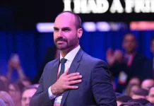 ‘Moraes não pode fazer nada” diz Eduardo Bolsonaro ao lado de ‘chefe dos embaixadores’...