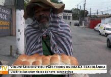 Enquanto pandemia não cessa, gari distribui pão e água para moradores da Cracolândia em...