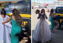 Carro de noiva quebra no meio da estrada e PRF ajuda ela a não...