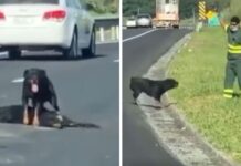 Uma cachorra fez o que pôde para afastar os veículos que trafegavam por uma rodovia movimentada em Guarapari (ES), tentando a todo custo proteger...