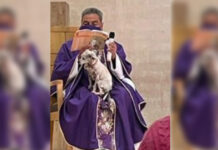 Padre celebra missa com seu cãozinho doente no colo para não deixá-lo sozinho