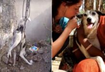 Na cidade de Rajasthan, na Índia, uma cadelinha abandonada ficou presa em uma barra de metal, em meio a uma construção. Por sorte, surgiu...