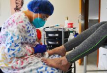 Além de palestras com orientações sobre os cuidados com os pés, também pode ser agendado o serviço de podologia básica com as...