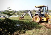 Equipes da Prefeitura e do Saae/Sorocaba atuam na remoção das plantas aquáticas do lago...