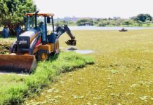 Prefeitura inicia nova remoção de plantas aquáticas no Parque das Águas