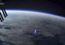 Estação Espacial capta imagens de ‘coluna’ azul acima das nuvens