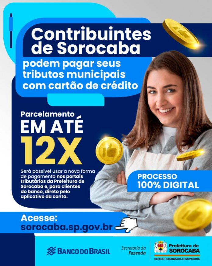 A Prefeitura de Sorocaba, por meio da Secretaria da Fazenda (Sefaz), em parceria com o Banco do Brasil, passa a oferecer uma nova opção de pagamento de tributos para os contribuintes, com cartão de crédito, parcelando em até 12 vezes.