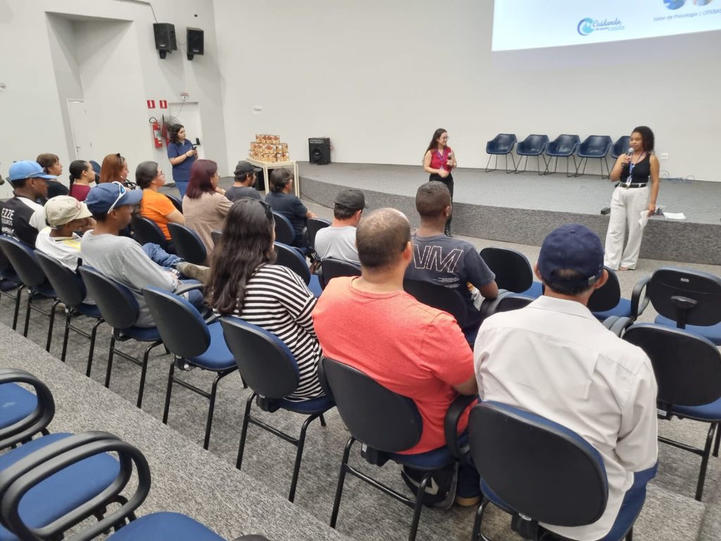 Os funcionários foram divididos em duas turmas, nos períodos da manhã e da tarde, e conferiram uma palestra sobre luto, ministrado pelas psicólogas Ana Costa e Giulia Guillen, da Ofebas – Assistência Funerária.