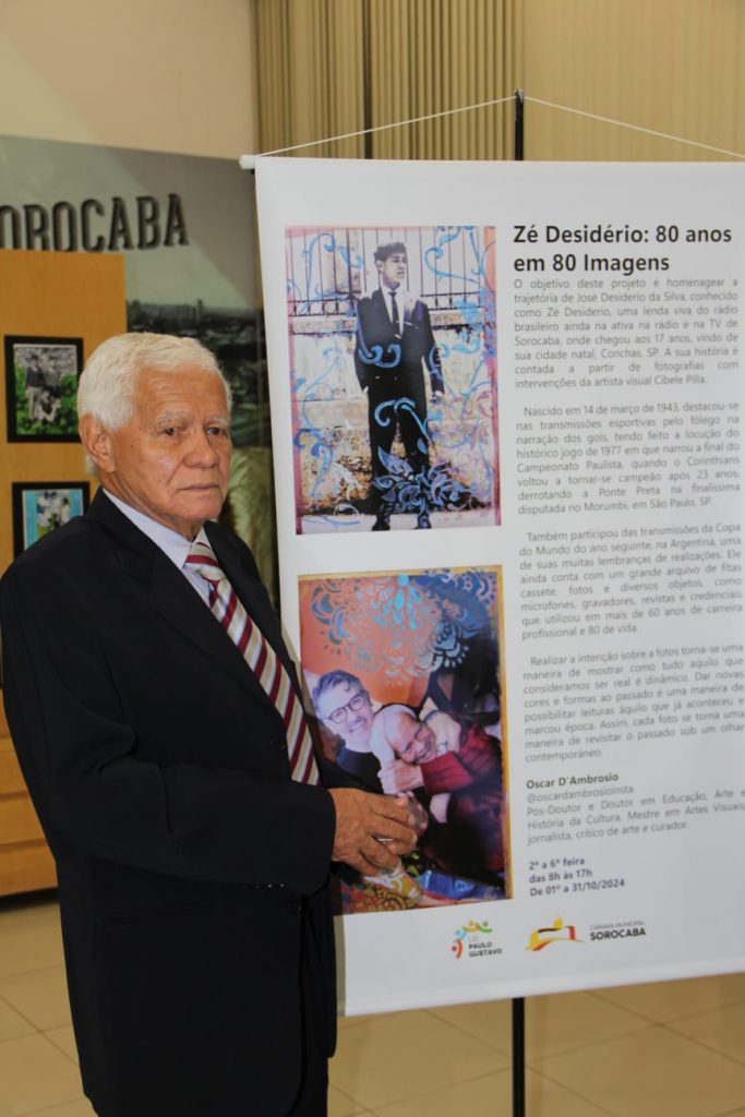O objetivo é, a partir de fotografias com intervenções da artista visual, homenagear a trajetória de Zé Desiderio, uma mito viva do rádio brasiliano, ainda na ativa na rádio e na TV de Sorocaba, em que atua desde os 17 anos de idade, vindo de sua cidade natal, Conchas (SP).