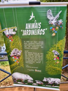 Lá, os visitantes puderam entender a relação direta entre animais e alguns frutos e sementes que são diretamente dispersos pelos mesmos, demonstrando que essa relação é benéfica para ambos, uma vez que a planta oferece o alimento para o animal. Já o animal, por sua vez, ao ingerir o fruto e se deslocar pela floresta, irá defecar as sementes que darão origem a novas plantas. Essa é uma estratégia de dispersão de sementes conhecida como zoocoria, e garante que novas árvores cresçam em regiões distantes de onde foram produzidas as sementes que lhe deram origem.