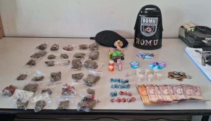 Dentro da sacola havia sete porções de crack, 24 porções de ice, 25 porções de cocaína e 40 de maconha, além de 79 reais em dinheiro. O dinheiro e os entorpecentes foram recolhidos e apresentados no Plantão da Polícia Civil, para registro da ocorrência e perícia no material.