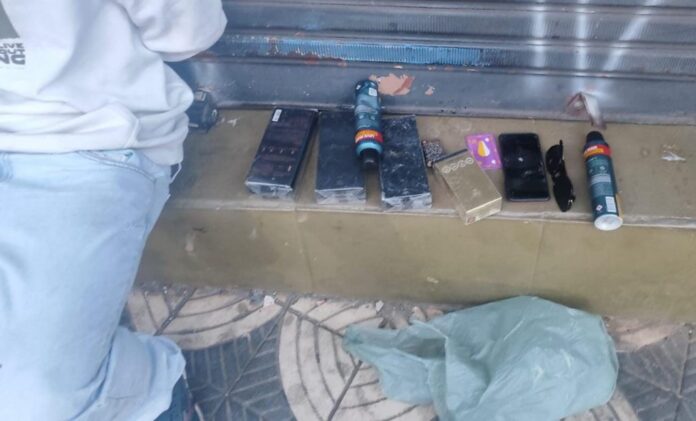 Os guardas foram acionados por munícipes, que relataram o furto praticado por um grupo de indivíduos, que poderiam estar nas proximidades. No local indicado, a GCM encontrou um dos suspeitos, detido por populares. Ele tinha estava contido com um cinto, que prendia suas mãos.