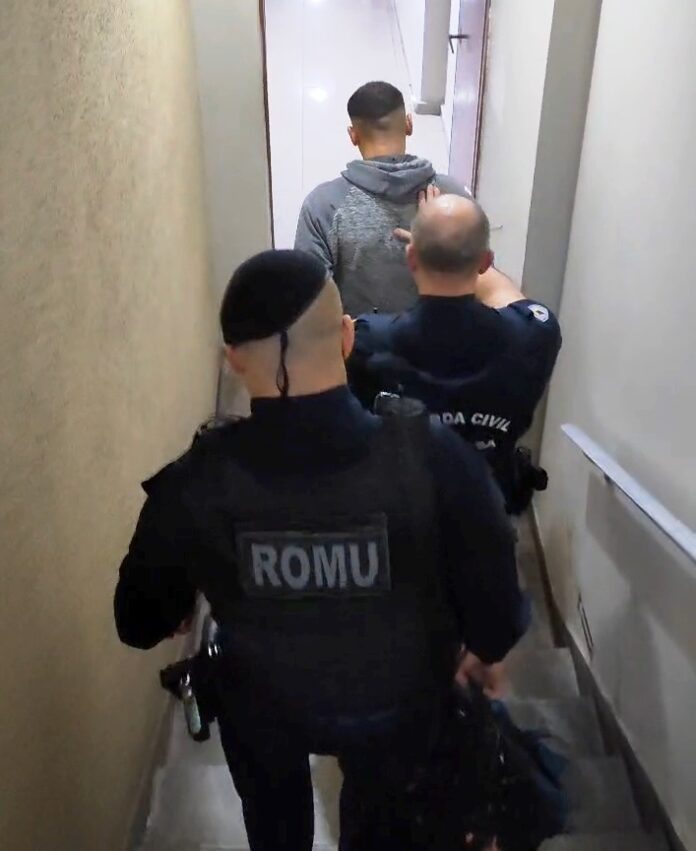 Durante a averiguação, o suspeito foi localizado no telhado onde tinha mais materiais relacionados à pichação, além da porção de maconha. O abordado apontou que estava acompanhado de outros dois indivíduos, com o intuito de realizar a pichação.