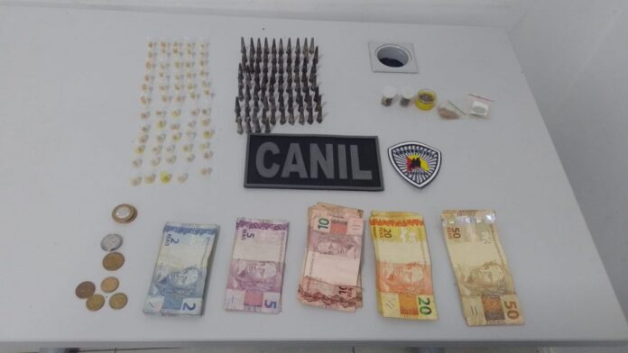 Na sacola havia drogas e dinheiro, sendo que com o acusado foi localizado mais dinheiro, em notas de maior valor. O homem confirmou que o dinheiro seria oriundo do tráfico de drogas. Ao todo, foram apreendidos R$ 572,60 em dinheiro, 85 porções de cocaína, 60 de crack, duas de haxixe e três de maconha.