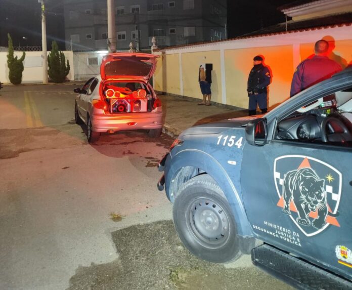 A Guarda Civil Municipal (GCM) de Sorocaba, durante patrulhamento preventivo, aprendeu um veículo, na madrugada desta segunda-feira (16), estacionado em via pública no bairro Lopes de Oliveira, Zona Norte da cidade. O motivo inicial foi a poluição sonora gerada, perturbando o sossego da vizinhança. Porém, ao todo foram constatadas quatro infrações de trânsito e aplicadas as devidas autuações.