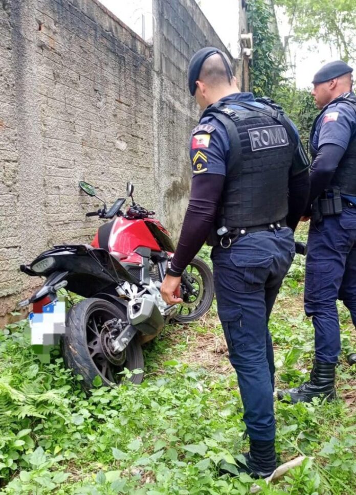 Os guardas foram informados por munícipes, sobre dois indivíduos que teriam saído de uma trilha em área verde, o que  levantou suspeita. Os GCMs entraram na mata para averiguar e avistaram a moto Honda CB-300F Twister, na cor vermelha, escondida entre os arbustos.