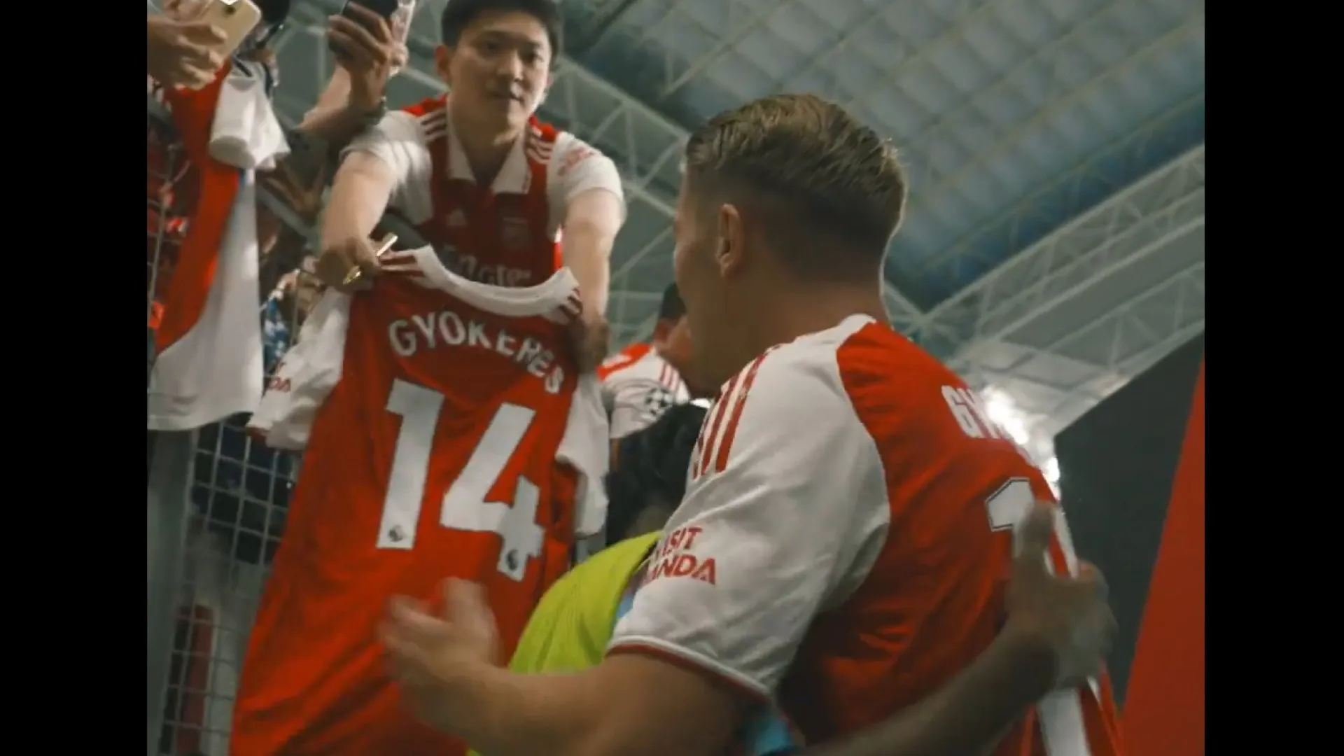 O Arsenal divulgou nesta terça-feira um vídeo mostrando o momento em que Viktor Gyökeres teve seu primeiro contato com os torcedores durante a pass…