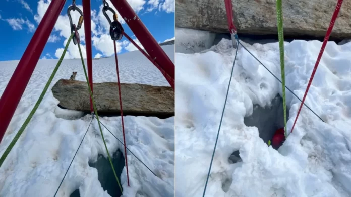 Um homem caiu dentro da fenda glacial Fee, em Valais, na Suíça, e acabou sendo salvo graças à ajuda do seu cão chihuahua, que, apesar de ser a meno…