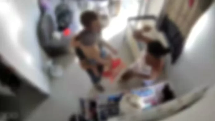 Imagens de câmeras de segurança registraram o momento em que uma mulher de 23 anos esfaqueou o ex-companheiro, de 30 anos, que segurava o filho de…