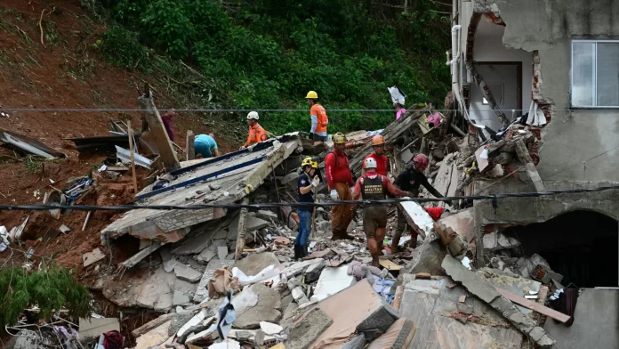 Um homem residente em Juiz de Fora, em Minas Gerais, descobriu que a sua família estava desaparecida e a sua casa tinha desabado após as chuvas tor…