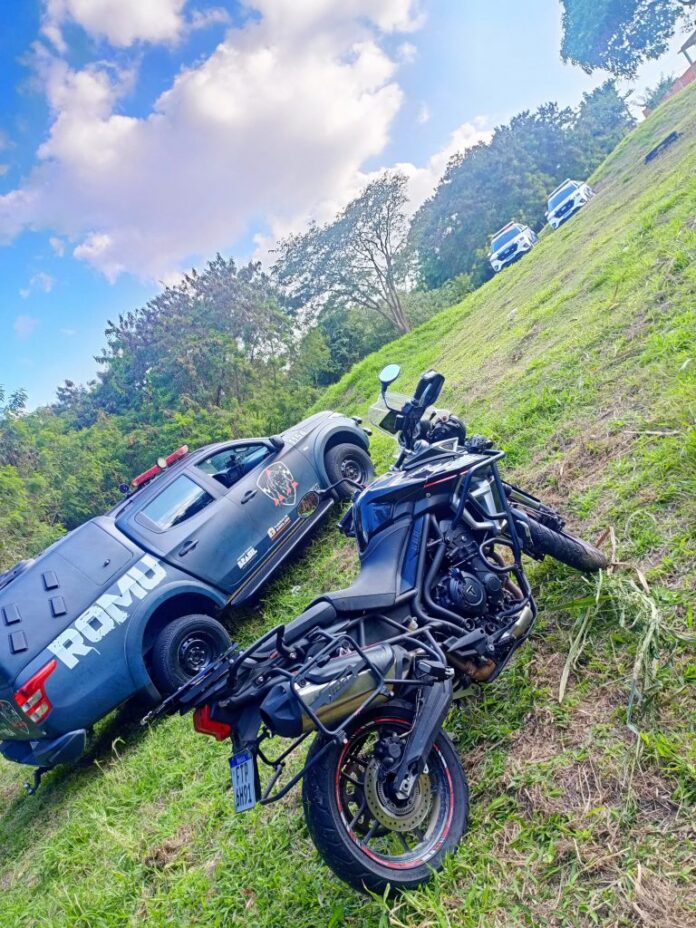 A equipe da GCM fazia patrulhamento preventivo pelo bairro e, ao acessar a mata que fica no fim da Rua Avelino Elias, localizou a moto Triumph Tiger XR, de cor preta, em meio à vegetação. Após consulta ao banco de dados de segurança pública, foi identificado se tratar de veículo produto de furto.