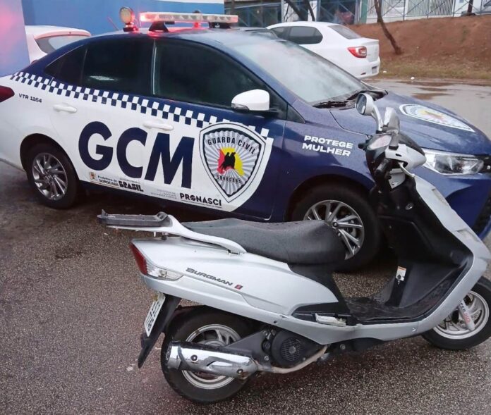 Após consulta no banco de dados de segurança pública, foi constatado que a motocicleta possuía registro de roubo. Durante a vistoria, os guardas encontraram objetos sob o banco do veículo, como chaves, controles, um TAG e outros pertences.