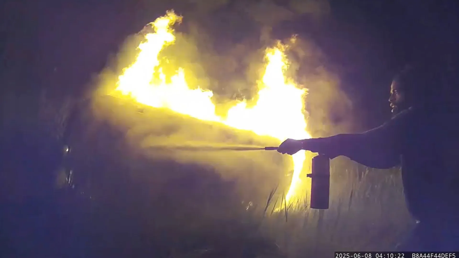 Uma mulher de 68 anos foi resgatada de um carro que pegou fogo após capotar em um acidente em uma rodovia em Nova York, nos Estados Unidos, na madr…