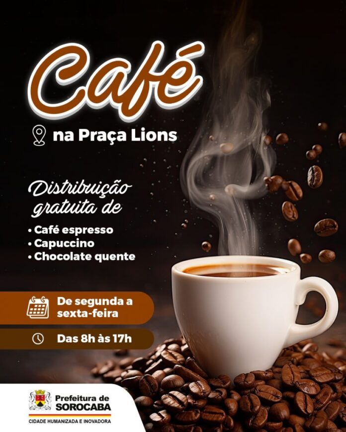 A Prefeitura de Sorocaba, por meio da Secretaria de Governo (Segov), vai oferecer à população o “Café na Praça Lions”, de segunda a sexta-feira, das 8h às 17h. A distribuição gratuita, que começa no próximo dia 22 de setembro, inclui café expresso, cappuccino e chocolate quente. A atividade tem caráter social, sem custo ao município e é em parceria com a iniciativa privada.