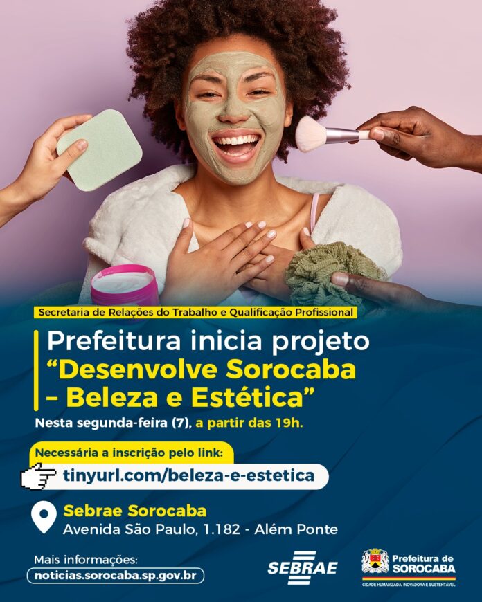 A Prefeitura de Sorocaba, por meio da Secretaria de Relações do Trabalho e Qualificação Profissional (Sert), em parceria com o Sebrae Sorocaba, darão início, nesta segunda-feira (7), ao projeto “Desenvolve Sorocaba – Beleza e Estética”. A ação acontecerá na sede do Sebrae Sorocaba, a partir das 19h.