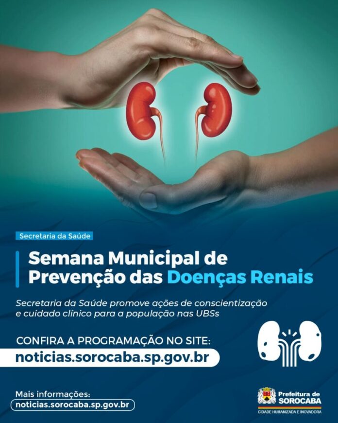 A Prefeitura de Sorocaba, por meio da Secretaria da Saúde (SES), vem realizando nas Unidades Básicas de Saúde (UBSs) ações de conscientização sobre a prevenção de doenças nos rins durante o mês de março. A iniciativa atende à Lei nº 11.213, de 5 de novembro de 2015, de autoria do Vereador Izídio de Brito, que instituiu a Semana Municipal de Prevenção das Doenças Renais, a ser realizada anualmente na segunda semana de março.