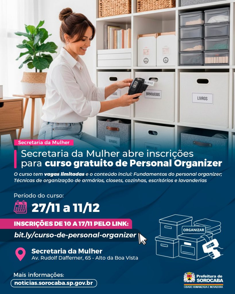 A Secretaria da Mulher (Semul) abre inscrições, a partir da próxima segunda-feira (10), para mulheres interessadas em obter capacitação para uma nova atividade profissional: o curso de personal organizer, com foco na organização residencial e corporativa.
