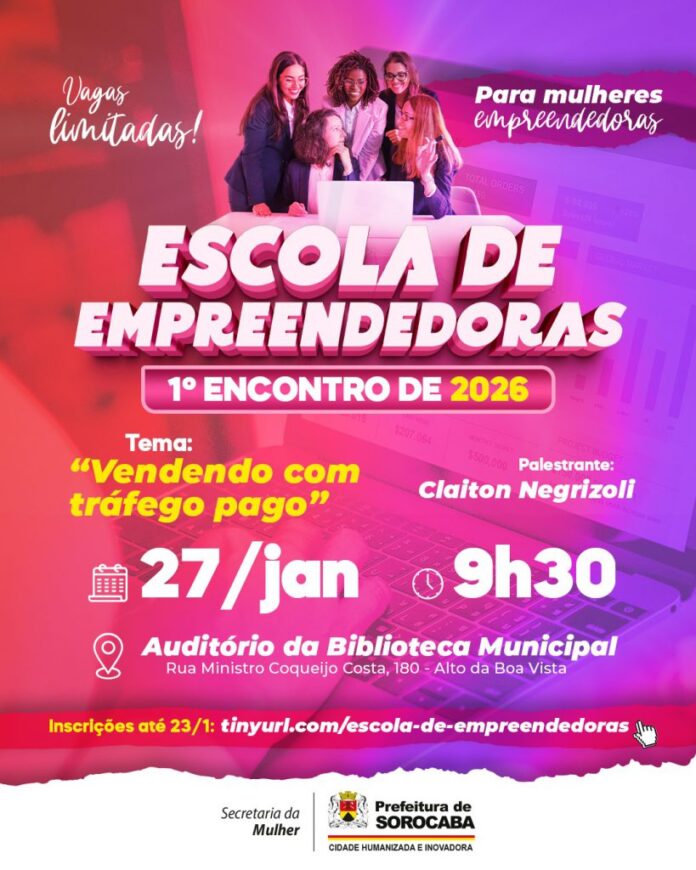 O primeiro encontro acontecerá no próximo dia 27 de janeiro, uma terça-feira, às 9h30, no auditório da Biblioteca Municipal de Sorocaba, com o palestrante Claiton Negrizoli. Os encontros seguintes acontecerão toda última terça-feira do mês, para que as mulheres empreendedoras possam aprender com profissionais da área e melhorar suas vendas, usando a tecnologia a seu favor.