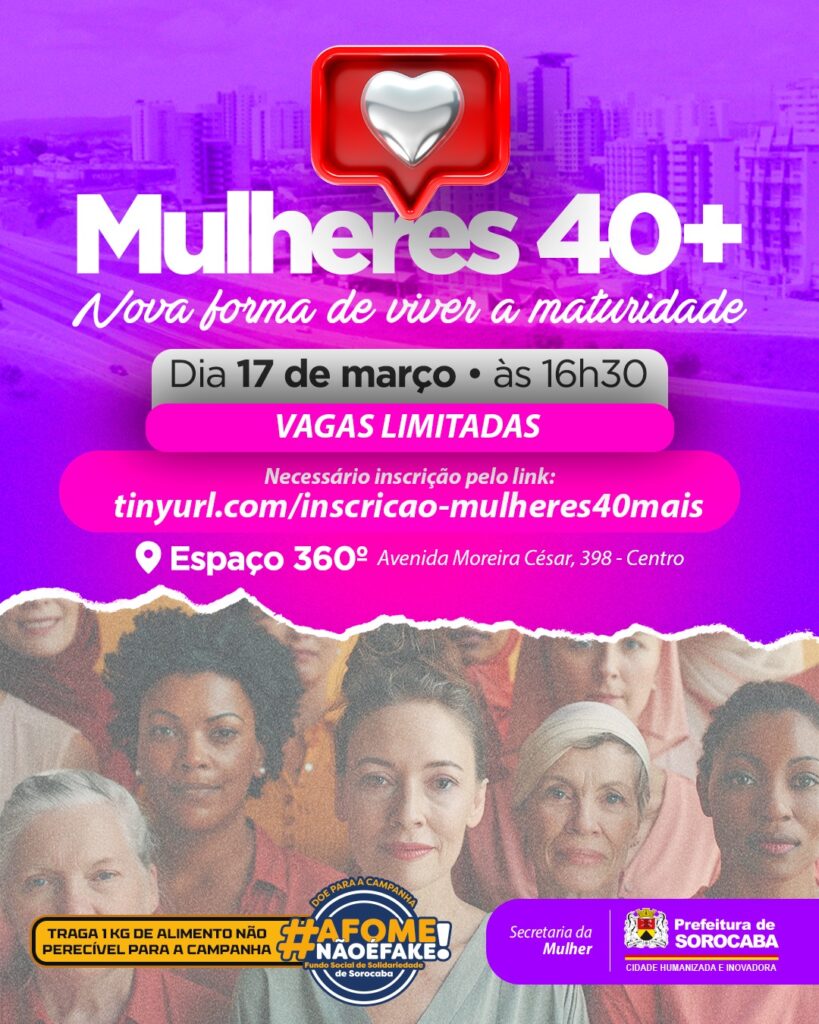 O primeiro encontro será no dia 17 de março, às 16h30, no Espaço no Espaço 360°, localizado na Avenida Moreira César, 398, no Centro. As vagas são limitadas e as interessadas devem se inscrever pelo link: https://tinyurl.com/mulheres40.