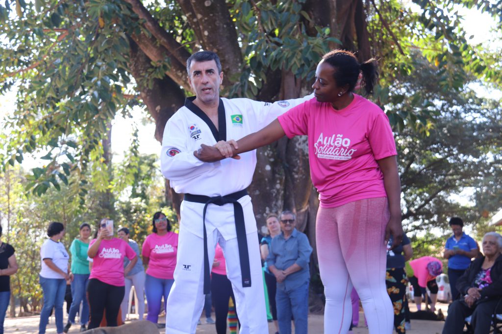 A Prefeitura de Sorocaba, por meio da Secretaria da Mulher (Semul) e com a participação das Secretarias de Saúde (SES), Esporte e Qualidade de Vida (Sequav), Meio Ambiente, Proteção e Bem-Estar Animal (Sema) e Ouvidora do Município, realizou, nesta quinta-feira (28), o “Aulão Solidário”, com aula gratuita de defesa pessoal instruída pelo guarda civil municipal Carlos Alberto de Carvalho. A ação fez alusão ao Agosto Lilás, de combate à violência contra a mulher.