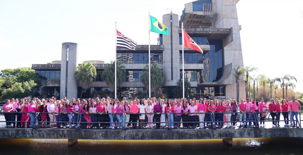 Em alusão à Campanha Outubro Rosa, que alerta as mulheres sobre a relevância da prevenção e do diagnóstico precoce do câncer de mama e do colo do útero, servidores do Paço Municipal participaram da ação de reflexão vestidos de rosa.